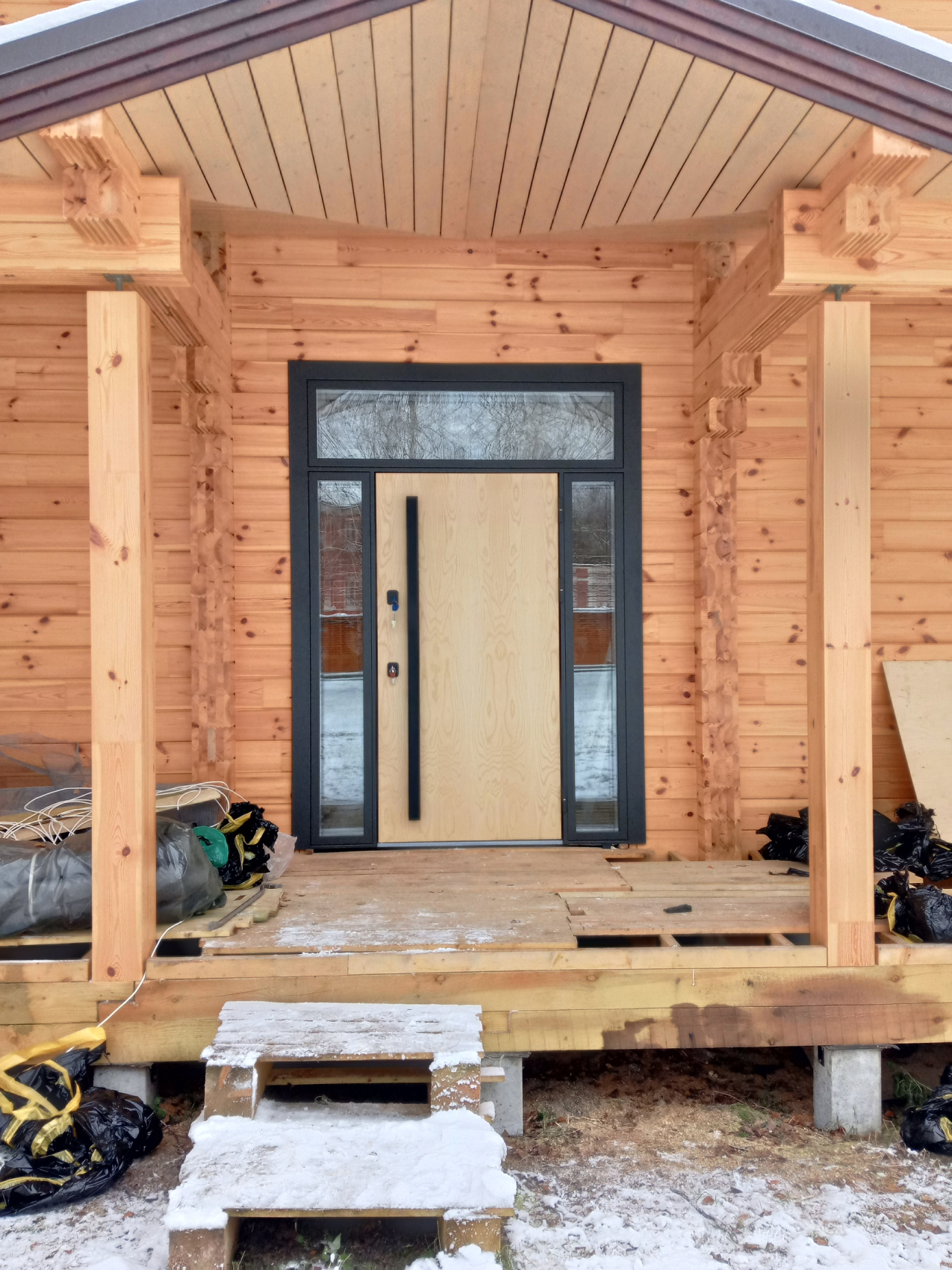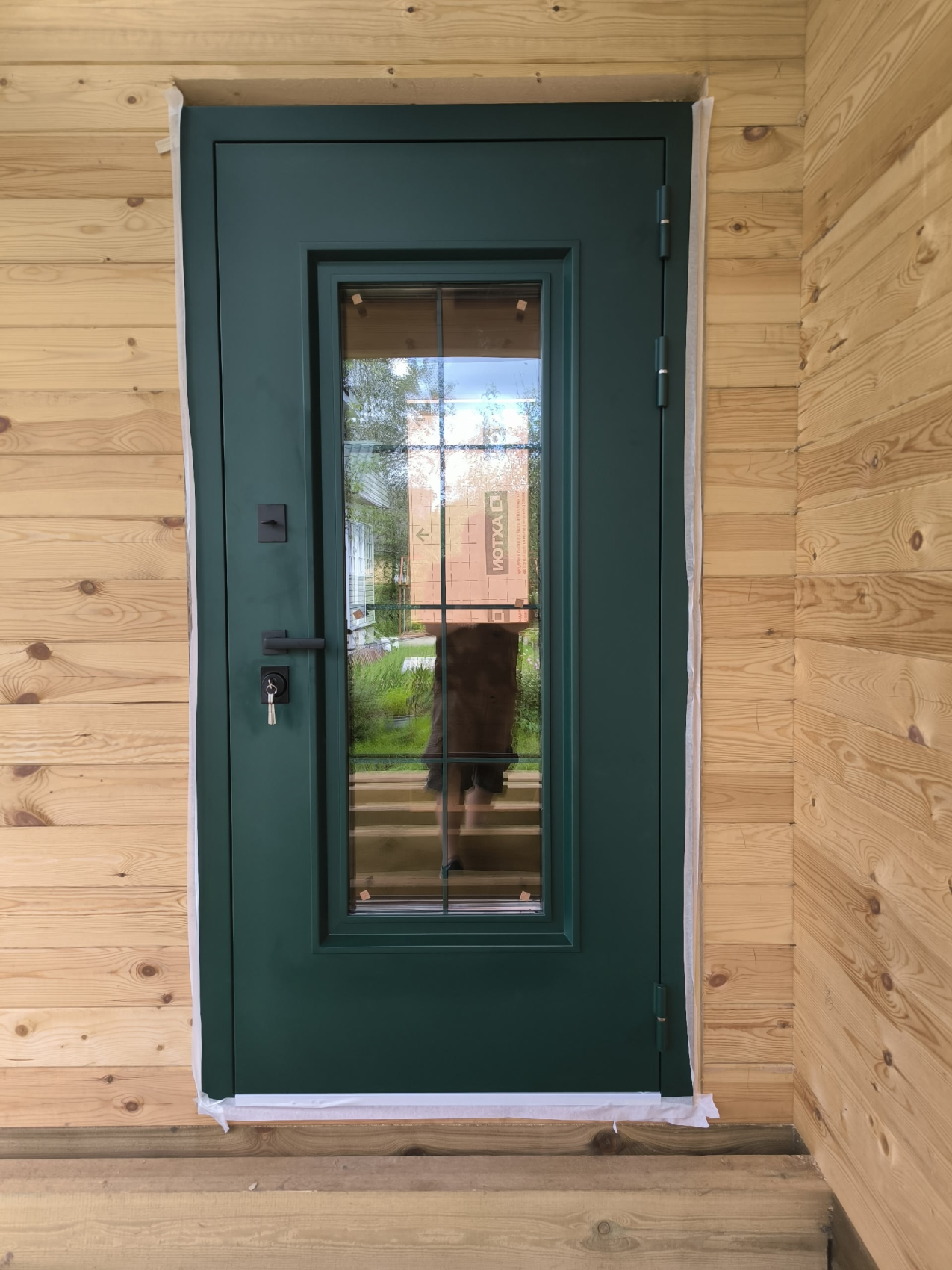 Для частного дома и дачи приоритет — климат. Уличные дешевые входные двери должны держать перепады температуры и влажности, поэтому обращайте внимание на наружное покрытие (порошок с дополнительным защитным слоем) и отсутствие открытых торцов МДФ. Если крыльцо продувается, полезны решения с терморазрывом в коробе/полотне и влагостойким наполнителем.